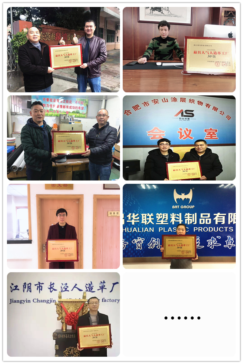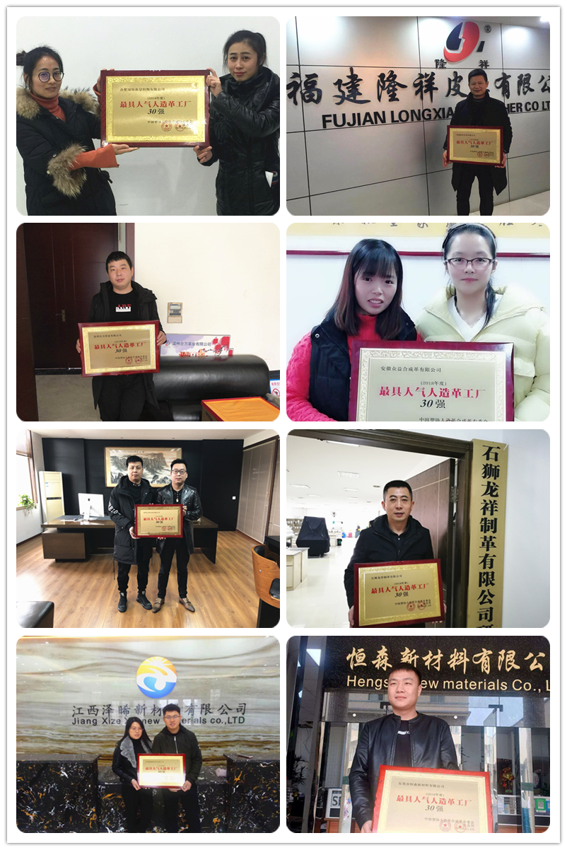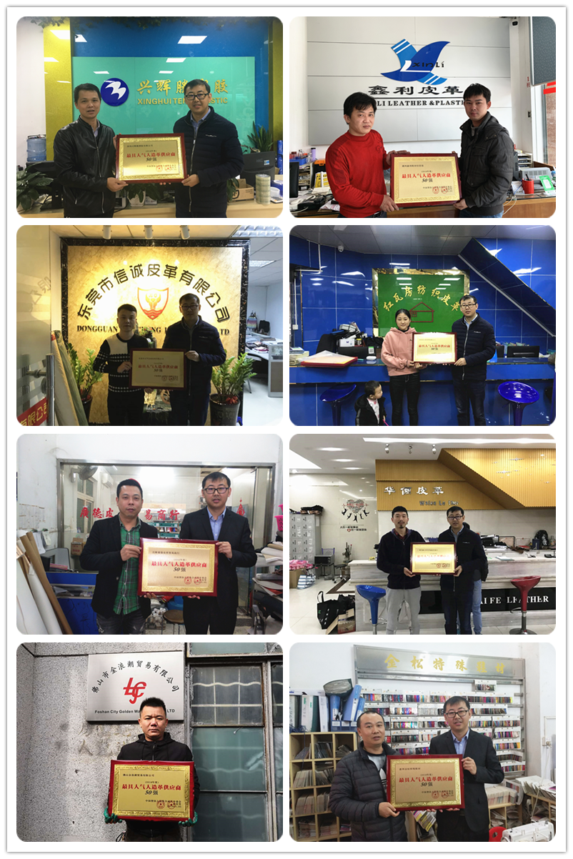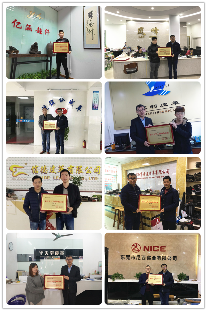 2018年度最具人气革厂与贸易商评选活动荣誉奖牌已于本周全部颁发完毕!在此次颁奖过程中,得到用户朋友们的热情反馈和认可,表示通过参与此评选活动可以更好宣传推广自我企业,而获得荣誉奖牌是努力宣传的成果和见证之一;同时通过此活动让更多人认识人造革行业,以及各家企业的主营产品。在此祝贺获得本年度最具人气奖的企业,同时感谢所有参与者!下面让我们一睹为快本次颁奖集锦: